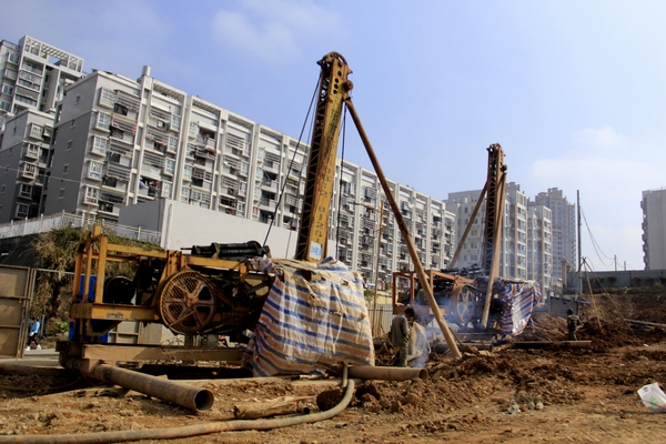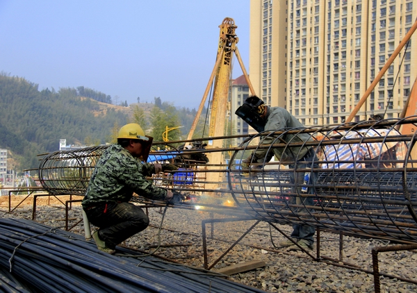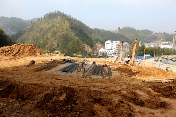 寿宁新闻网讯 吴苏梅 3月3日,在县城东区白叶坑行政服务综合大楼地址处,工人在平整过的土地上忙着焊接钢筋笼、打地桩等施工。据了解,为面对群众标准化服务,我县准备投资8000万元建设该行政服务综合大楼,拟建10层,建筑面积为20410平方米,建成后集行政服务大厅、人社办事大厅、标准档案场馆及办公功能为一体。自去年11月动工建设以来进展顺利,今年4月左右可进行主楼体建设。