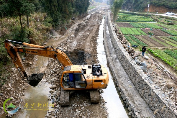 寿宁新闻网讯吴加元 吴通华 3月8日,在蟾溪流域安全生态水系综合治理项目建设现场,挖掘机清理河道,工人们正在干砌块石生态、生态砖护岸、浇注亲水步道基座。据悉,该项目总投资2500万元,河道总长20公里,预计今年6月底完工。这是寿宁实施“河长制”以来一项为民办实事的民生工程之一。