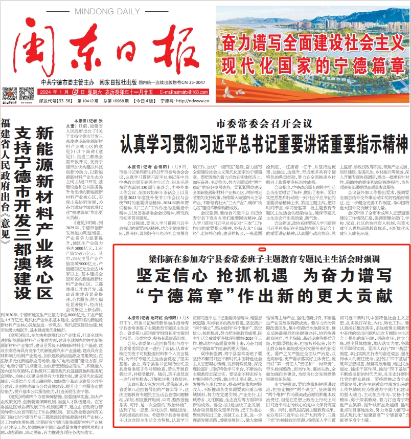 闽东日报关注丨坚定信心 抢抓机遇 为奋力谱写 “宁德篇章”作出新的更大贡献