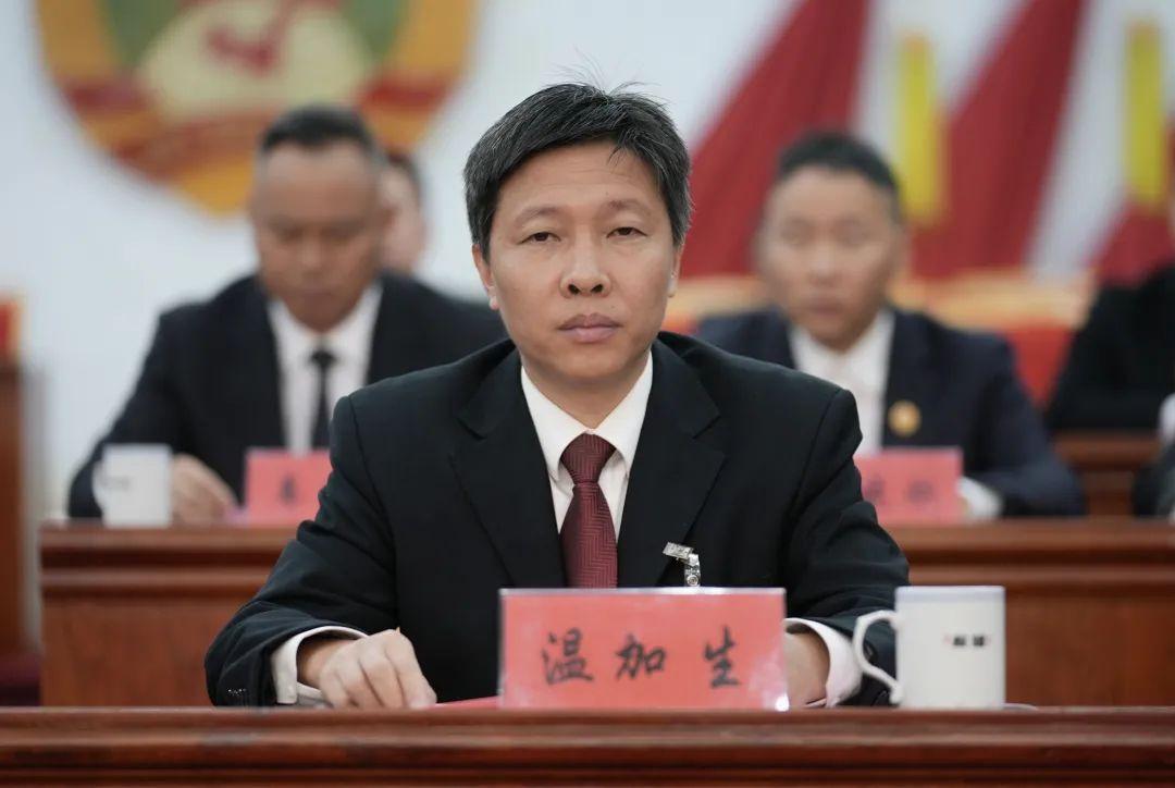 经全体委员投票选举,温加生同志当选为十届县政协主席。