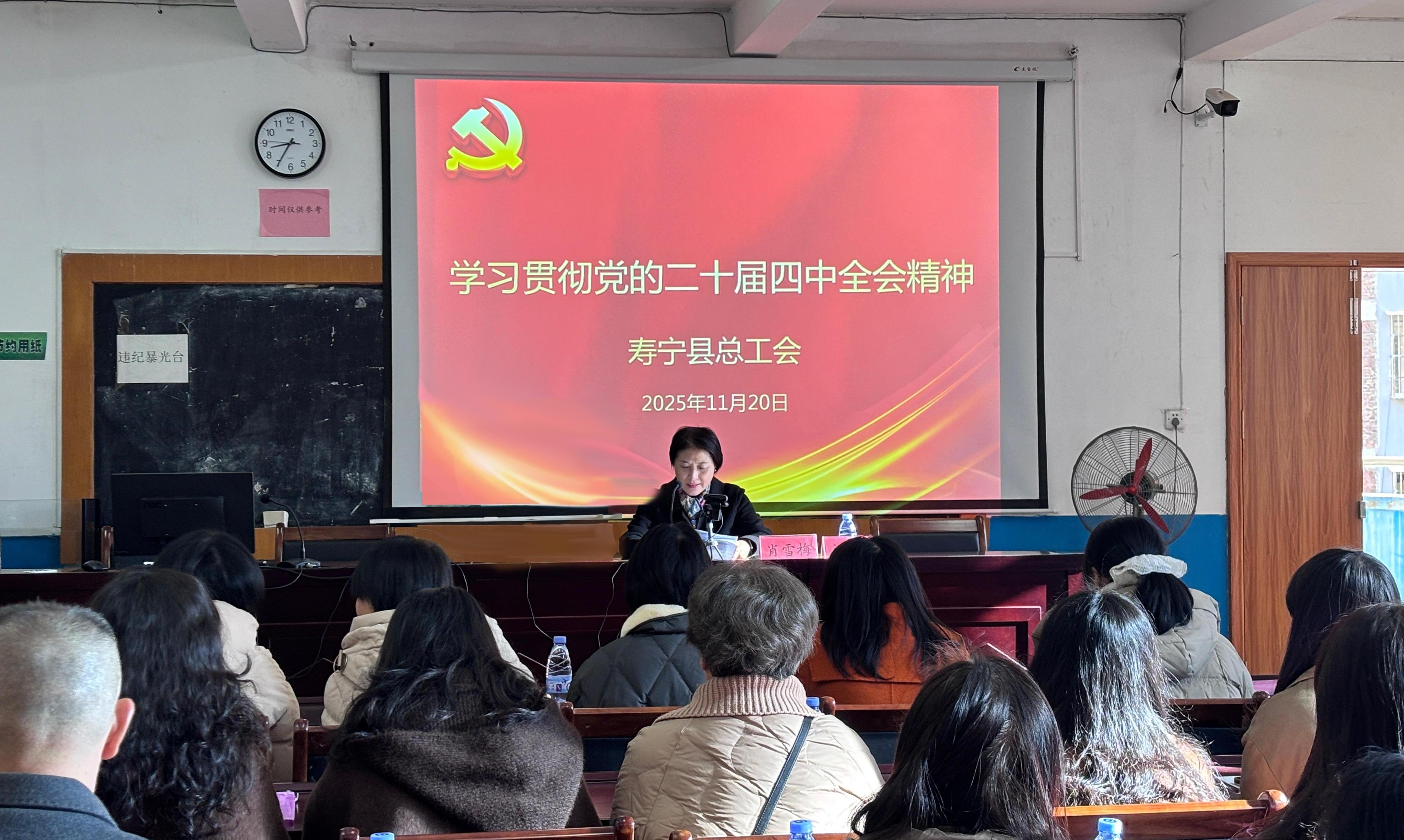 为深入学习宣传贯彻党的二十届四中全会精神,引导广大职工群众把思想和行动统一到党中央决策部署上来,11月20日,县总工会党组成员、副主席肖雪梅为职工作专题宣讲报告,推动全会精神入脑入心、落地生根,引导大家在深学细悟中凝聚共识、汇聚奋进力量。