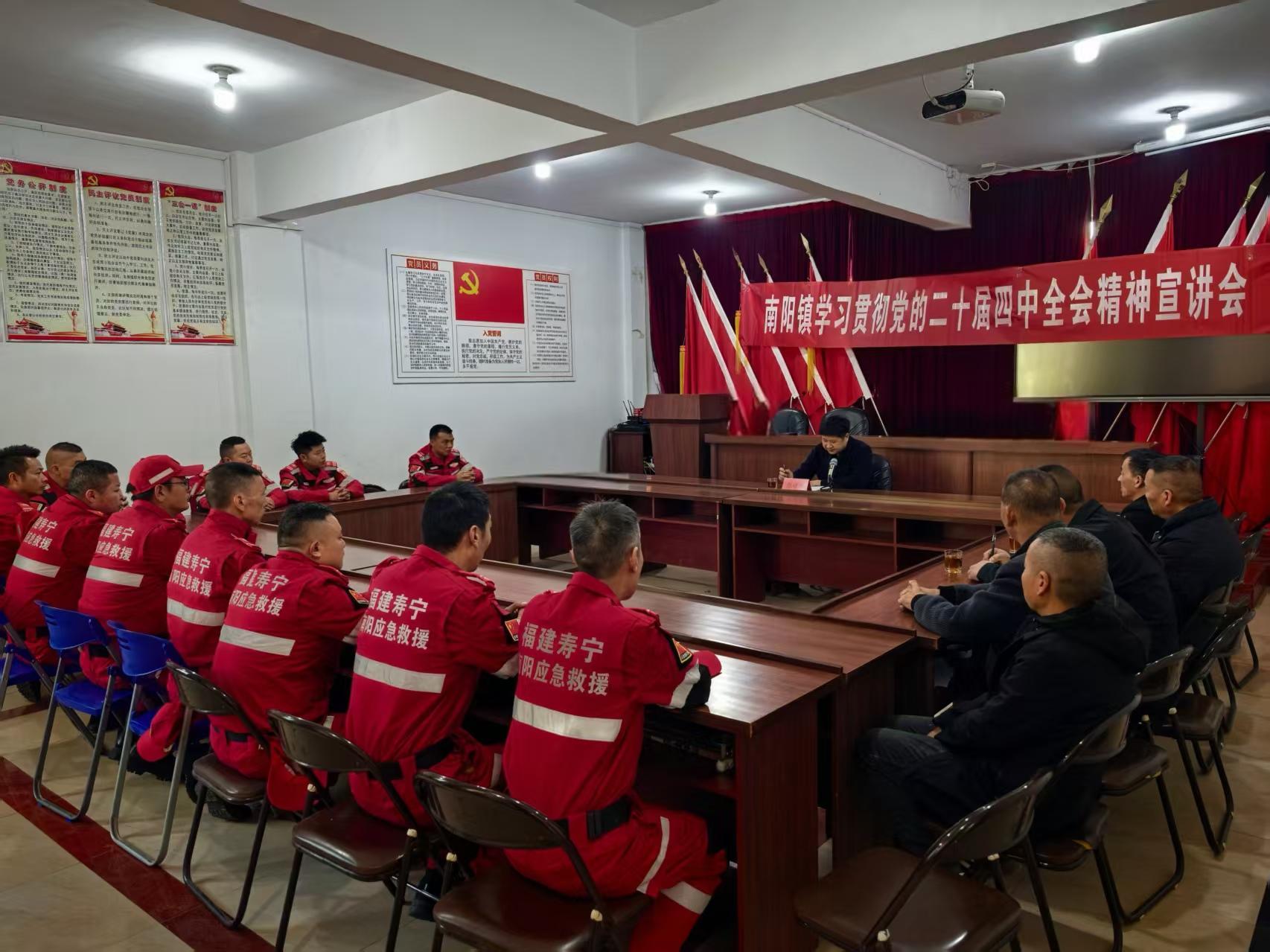 张建龙深入南阳青年义务应急救援队 凝聚应急力量担当使命 11月27日,南阳镇党委书记张建龙来到南阳青年义务应急救援队,为全体队员作党的二十届四中全会精神专题宣讲。宣讲会上,张建龙围绕“全面把握二十届四中全会的历史方位与核心成果”“二十届四中全会战略部署的全方位解析”“以全会精神为指引推动基层工作高质量发展”三个方面展开深入交流。 张建龙指出,党的二十届四中全会是在我国迈向第二个百年奋斗目标新征程关键节点召开的重要会议,全会审议通过的《中共中央关于制定国民经济和社会发展第十五个五年规划的建议》,为未来发展指明了前进方向。他详细解读了全会召开的三重特殊历史坐标、“十四五”时期重大成就以及“六个坚持”重要原则等核心内容,系统阐述了全会在经济发展、创新驱动、城乡区域、民生福祉、文化建设、生态文明、安全发展、党的建设等12个方面的战略部署。 结合救援队实际,张建龙强调,要紧扣全会安全发展部署,坚守安全底线,推进“事前预防转型”,加强日常安全隐患排查与宣传教育;健全协同联动机制,深化与各部门、村社的协作配合;通过常态化学习培训强化自身建设,锤炼专业素养,打造过硬应急救援队伍。他希望队员们将个人成长融入国家发展大局,以坚定信念、专业本领、务实作风勇担使命,为守护群众生命财产安全、推动南阳镇高质量发展作出更大贡献。