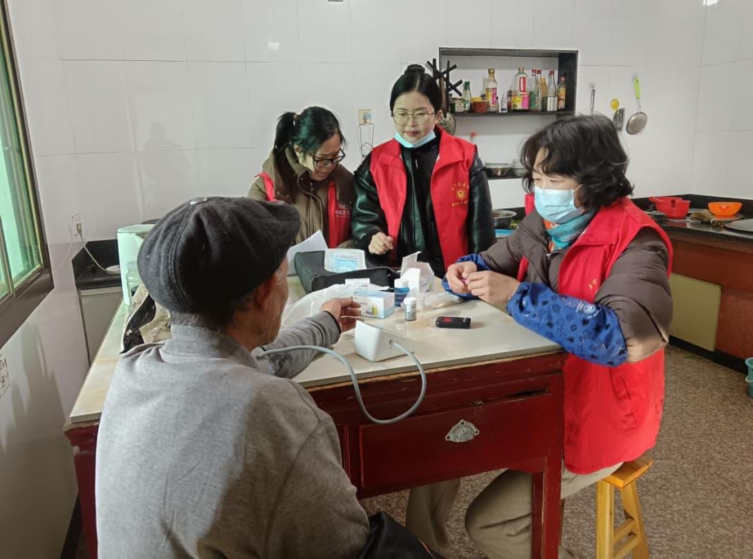 2月3日,鳌阳镇安宁村的网格员们和村医穿着红马甲,带着血压计、血糖仪,穿梭在村内街巷,挨家挨户为村里的老人们送上贴心的上门健康服务。